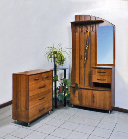 Прихожая состоит из комода и шкафа с вешалкой, в комплект входит зеркало. Другие варианты мебели в прихожую можно посмотреть в разделе Прихожие.