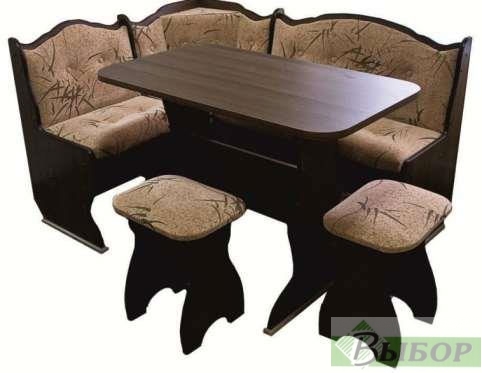 В комплект входят: угловая скамья — 1шт, стол — 1шт., табурет — 2шт.